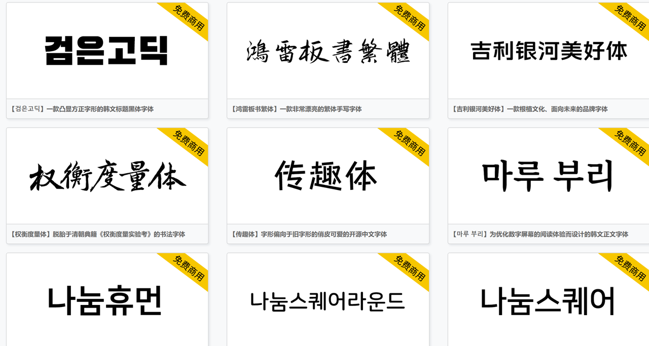 字体家是比较侧重书法风格的免费字体网站,同时兼顾各类实用字体,适合主打国风、非遗、传统文化类创作的创作者,免费商用字体涵盖楷书、行书、草书、隶书等多种书法字体,风格浓郁,辨识度极高。我认为这个网站的书法字体质量出众,既有经典书法字体的复刻版本,也有设计师原创的书法字体,比如多款毛笔字体笔锋凌厉,自带气势,适合品牌宣传、活动海报设计。