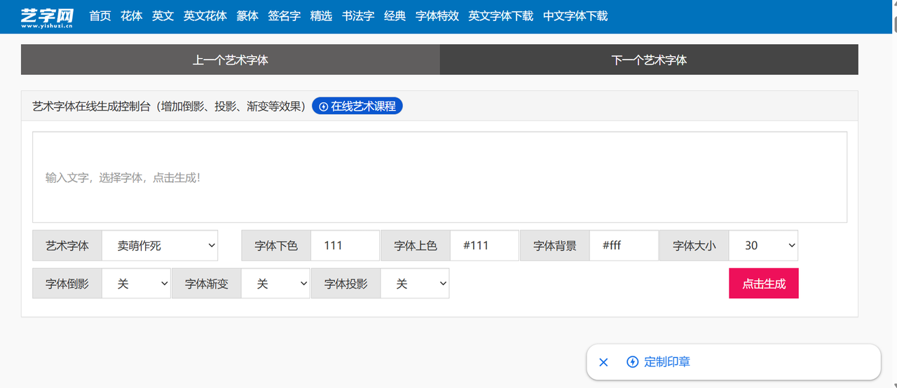 2、艺字网:输入文字,立即生成艺术字体