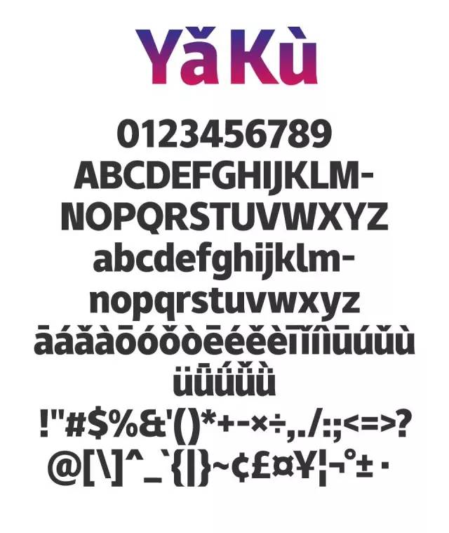 雅酷黑像是大刷子刷出来的图形,笔画更加简洁充满张力。