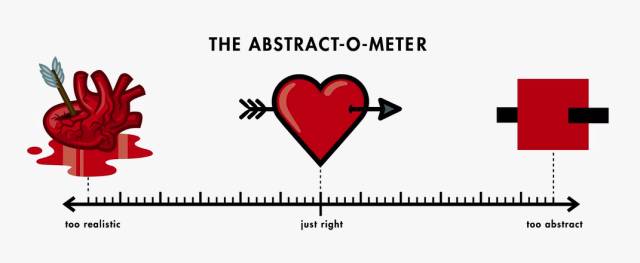 他的插画总是顽皮而明朗,在只可意会的抽象和可以言说的写实间寻找幽默的平衡,游刃有余。纪录片中,他也用Abstract-o-Meter“红心尺”,来解释自己是如何把握之间的尺度的。