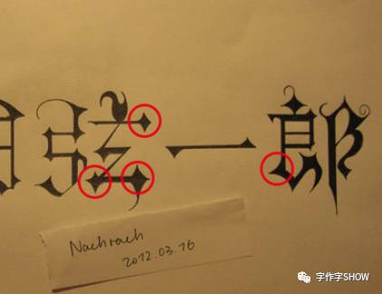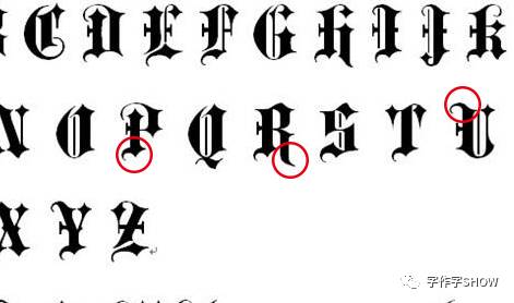 2 提取你想要表现风格字体的字体特征,就像宋体字的横竖起笔落笔时的三角。本例幻字提取哥特风格字体笔画的修饰如下图。