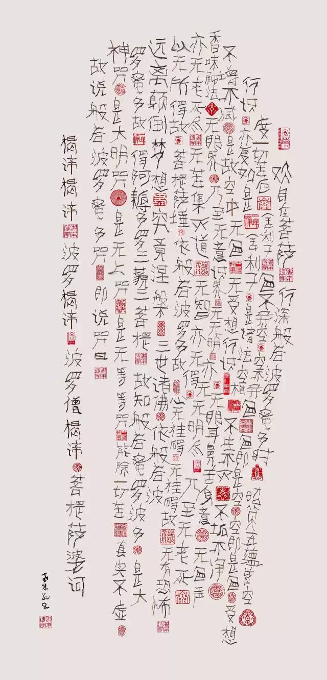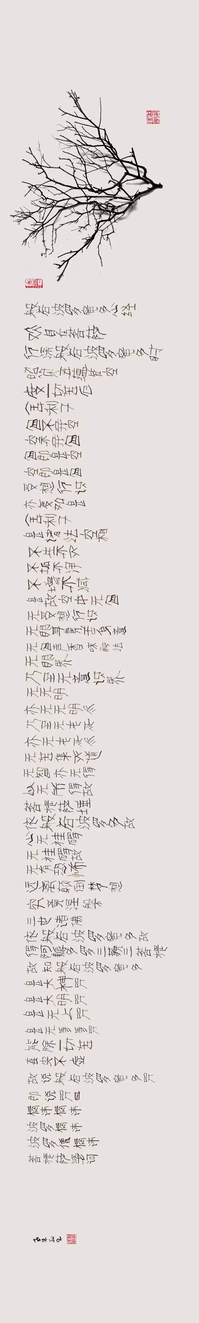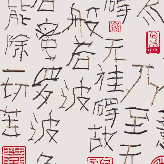 在心经创作时,把干枯的树枝拣回,通过以树枝自然的形态重新组合,把心经一个字一个字组合,拍照。在这当下的过程是充满的,不是刻意感觉,是自然体会,是一次对心经的感悟,对自我心灵的一次洗涤,当我提起正念创作的时候,就是在练习回归当下,以便活在此时此地。当身心完全安住当下时,一个个字便会清晰地显现在面前,这是一种美妙的存在。这正是:树枝在手中,正念直提起,吾心与吾身,安住此时地。