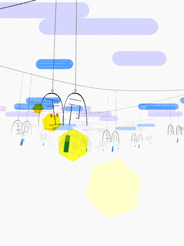 用来回穿梭的人串联起字母 U :