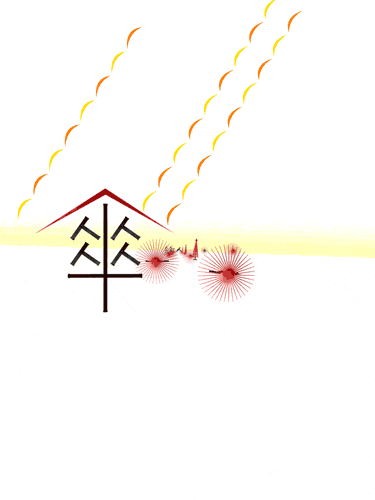 用简简单单的「火」字就营造出了烟花绚烂的景色。