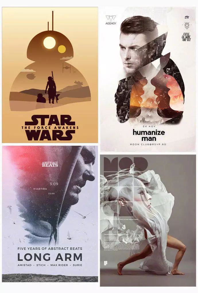 哦不对,放错图了,不是电影,是设计中的二次曝光,你一定见过下面这些: