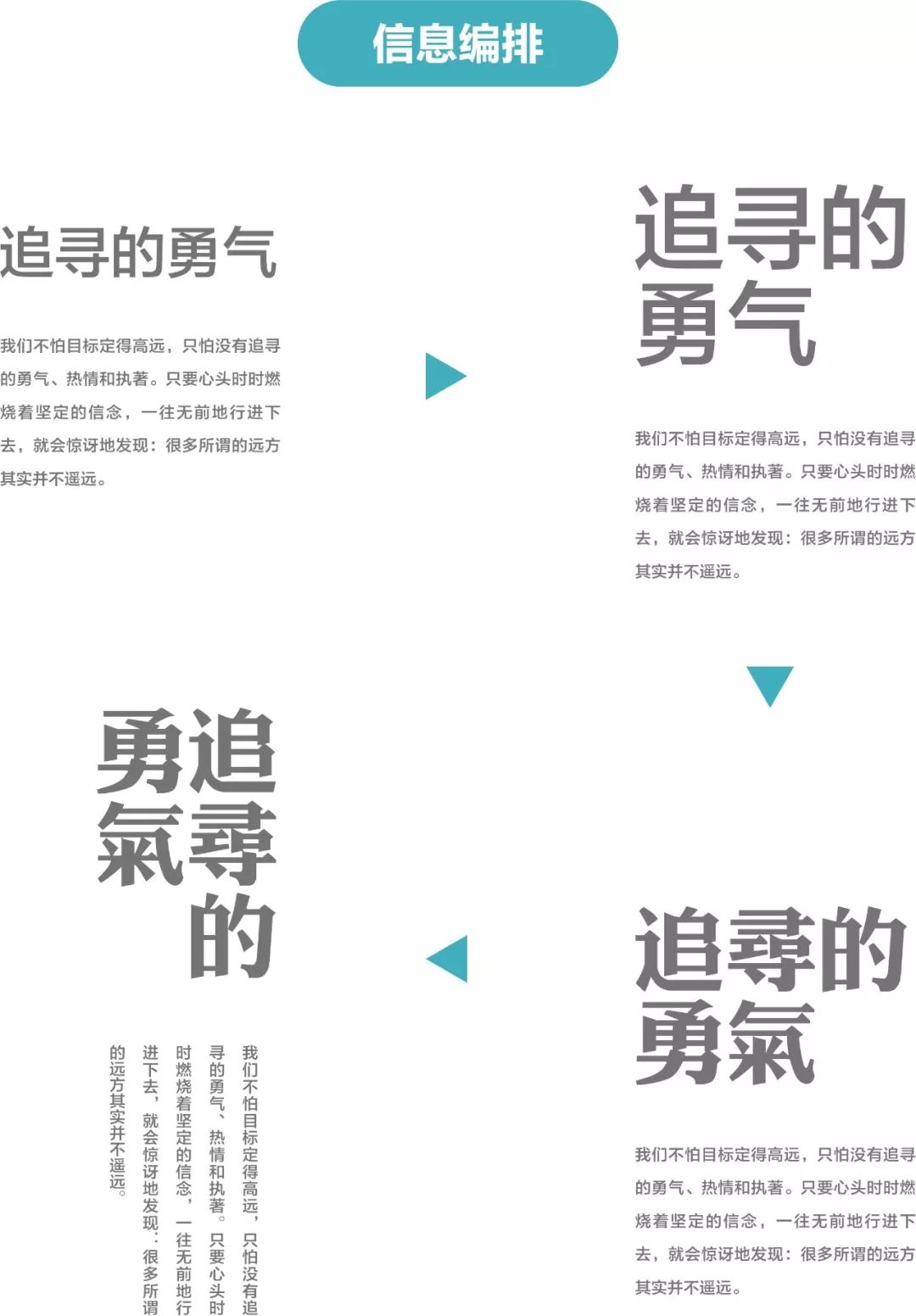文字信息也不是放上来就完事了,要进行编排,将主标题断行,和内文按比例分开等。