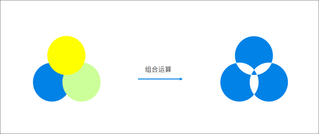 组合运算,听起来,也是将两个以上的元素合并成一个形状,但它和联合的区别就在于,重合的部分被掏空了。