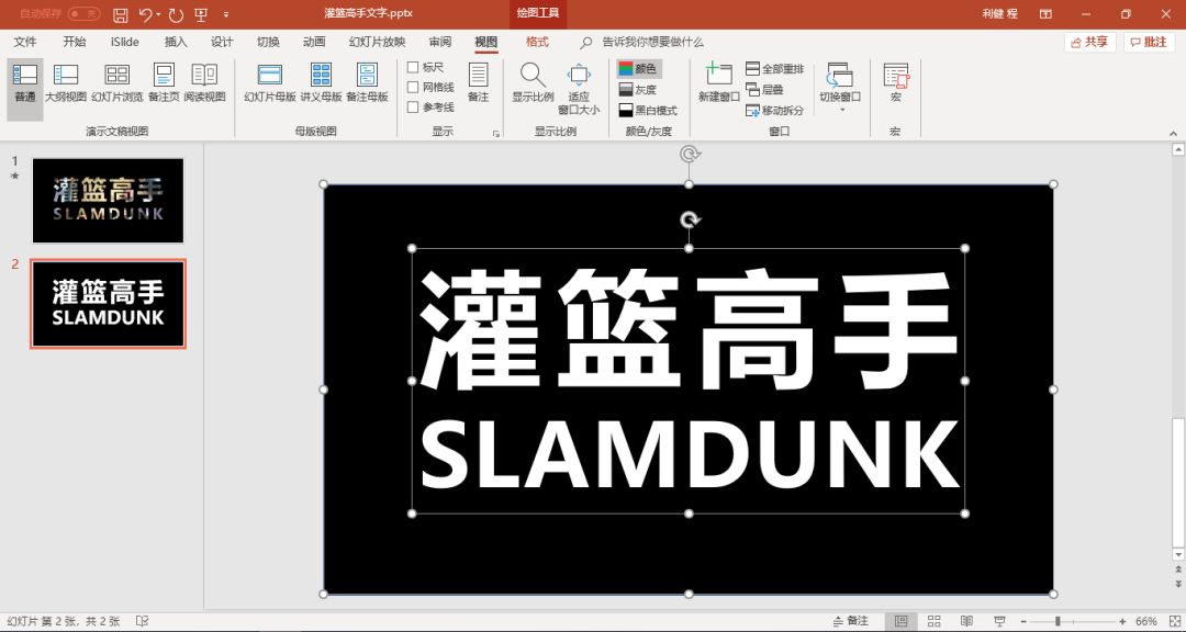 再插入一个视频,将视频移到幻灯片的底层,就可以得到一个高逼格的特效字。