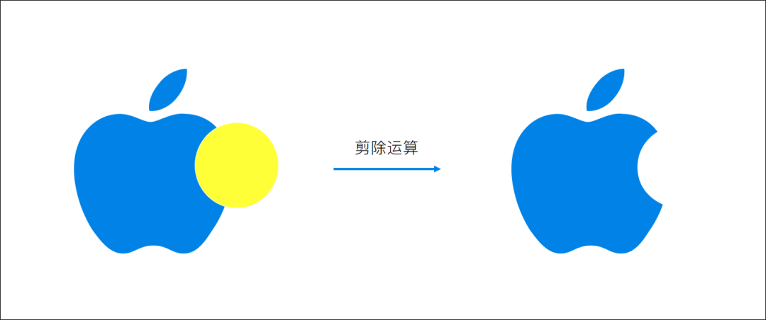 比如,先选中一个苹果,再选中一个圆,通过剪除,就得到了Apple。