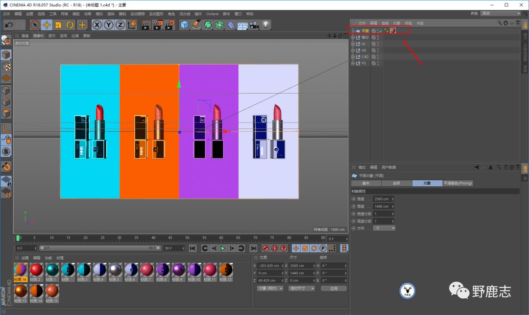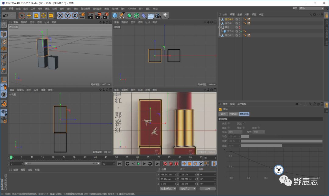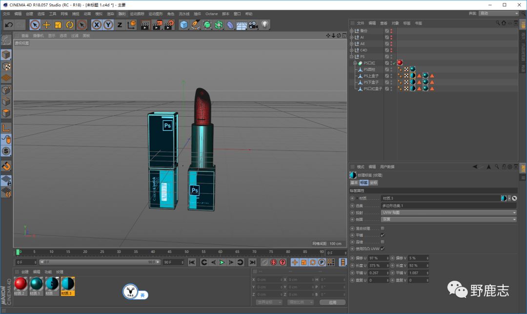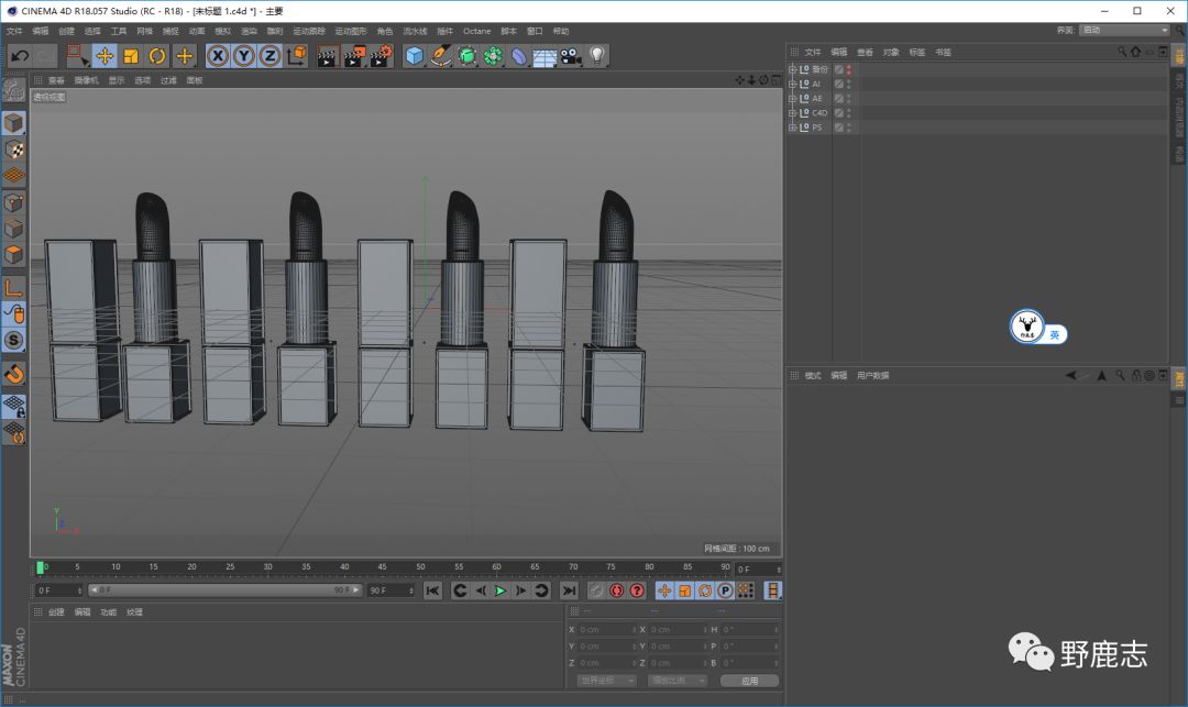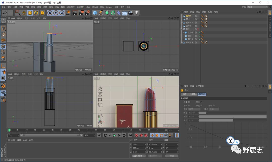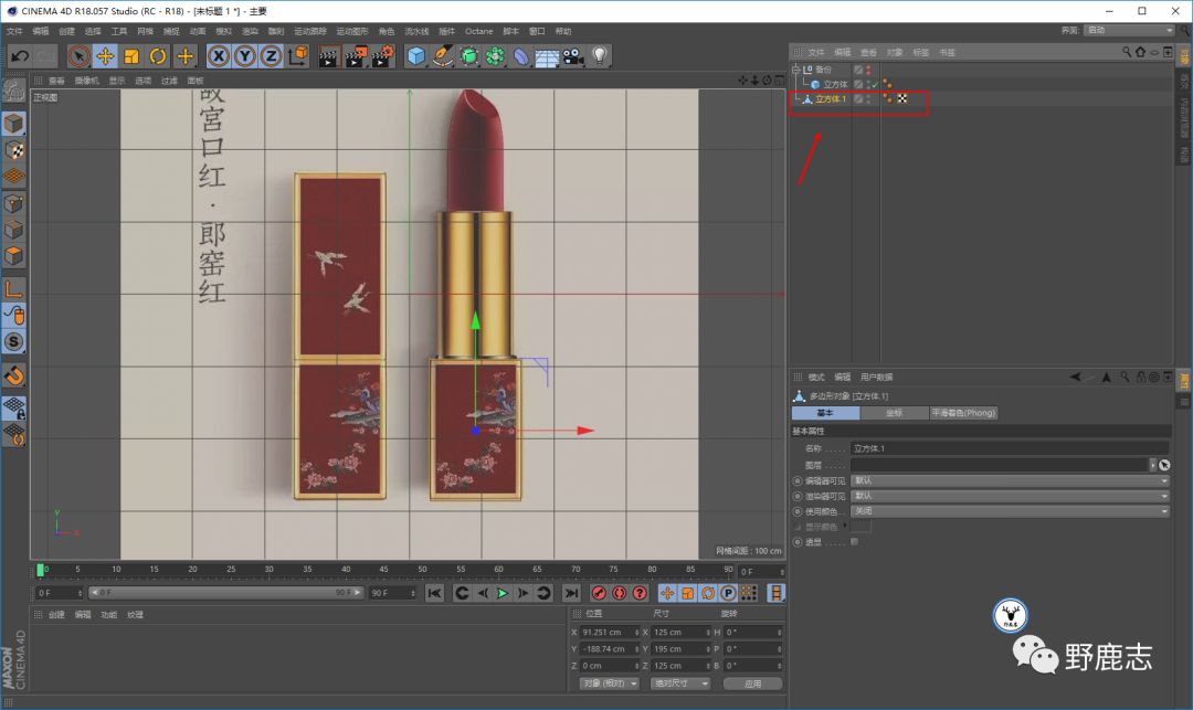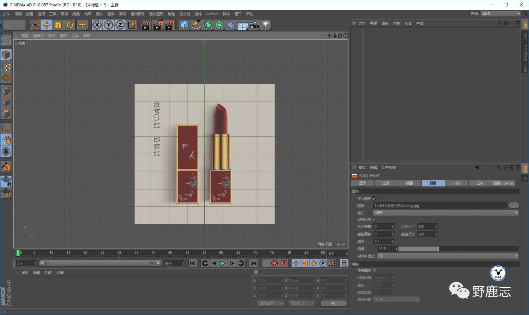 打开C4D,shfit+v把口红的参考图放进来,我这里参考的是故宫口红: