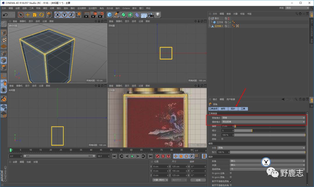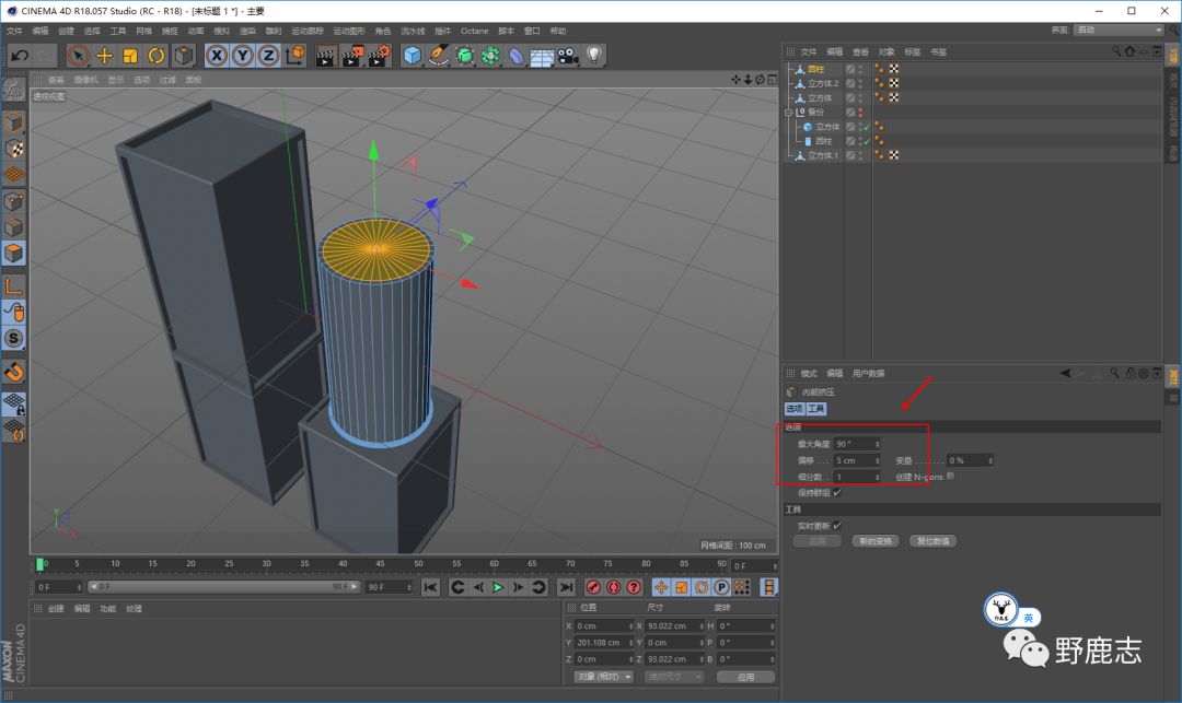 鼠标右键倒角工具,添加一点点倒角,细分数这些大家都看着效果来吧:
