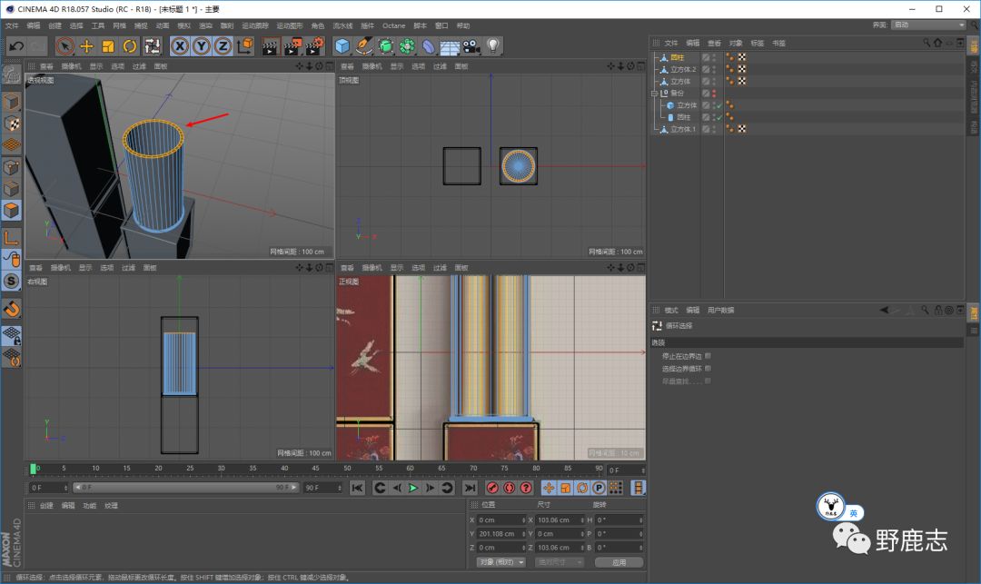 然后线层级,继续用循环切刀工具切割,目的是添加线,让对象看起来更稳定:
