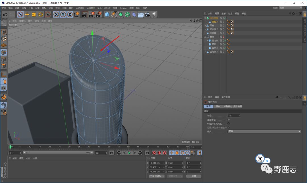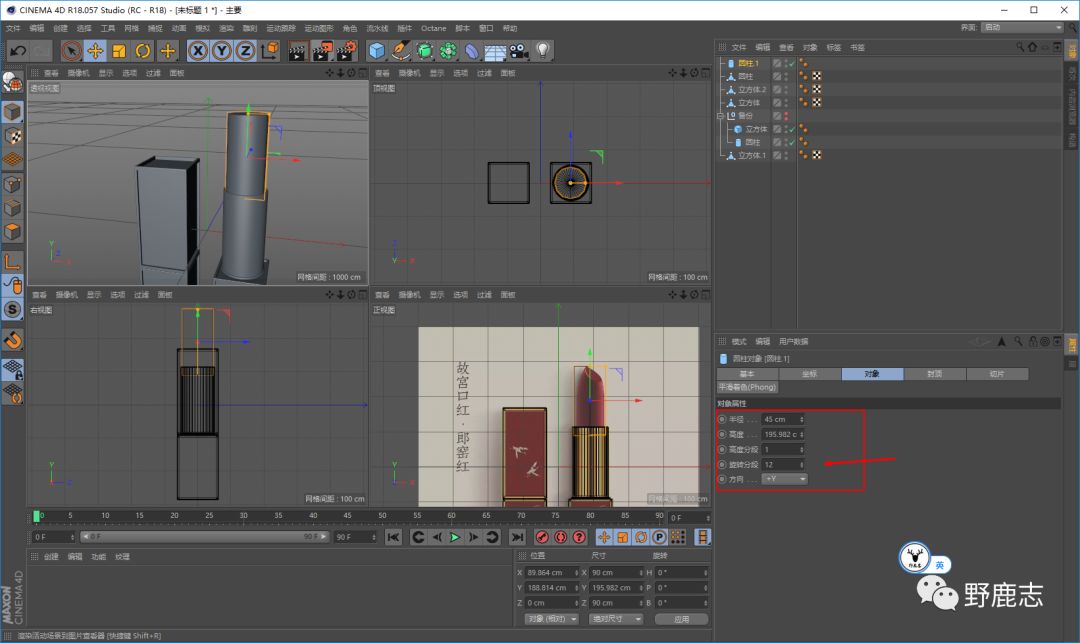 下面开始制作膏体了,再次新建一个圆柱,分段数改为12,高度大小大家同样看着办吧: