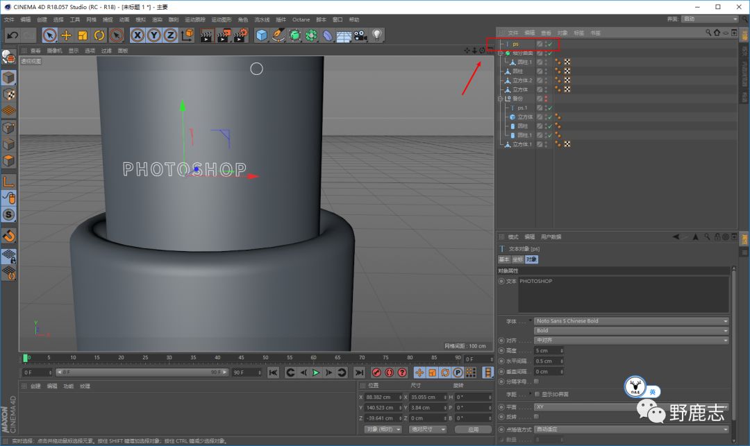 我想要在膏体上做点文字,所以新建一个文本,调整其位置和大小,让它刚好贴在膏体上: