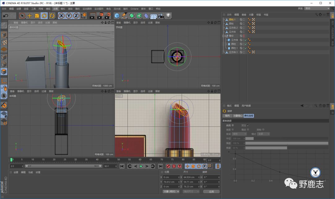 这样差不多口红的大体模型就出来了,做起来其实不算难,不过写出来篇幅还是不短啊。