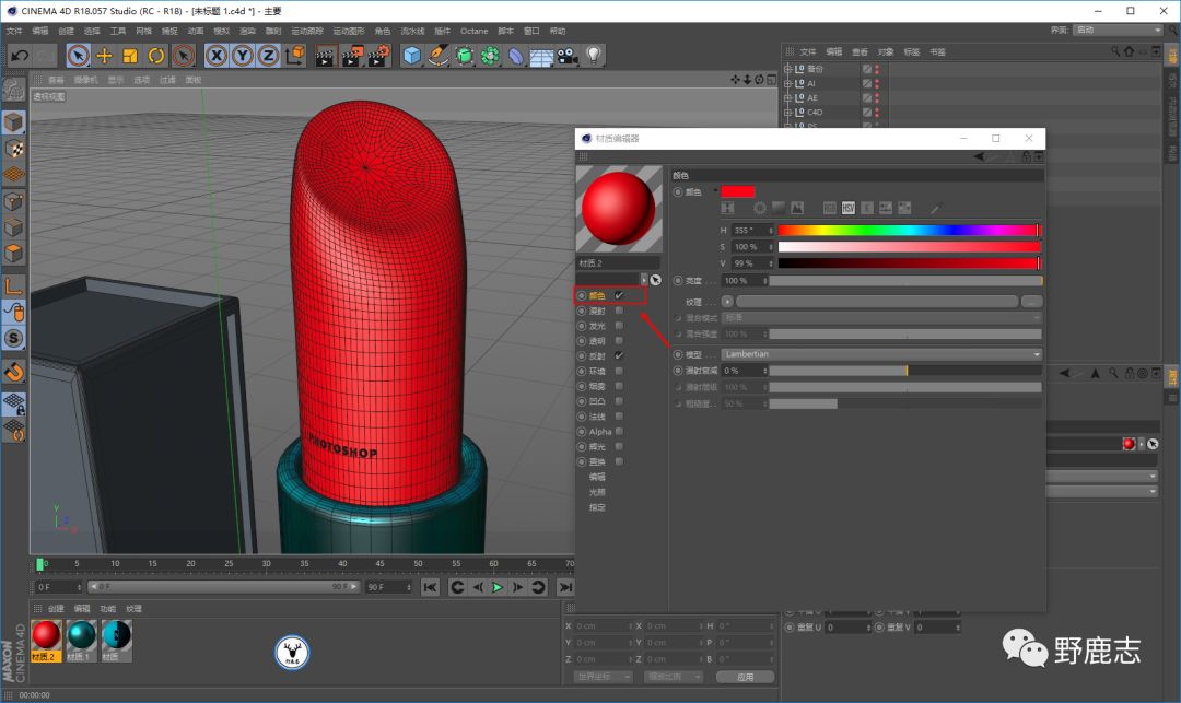 口红膏体的材质,我说一下我自己的搞法吧,首先是颜色通道来修改口红的颜色: