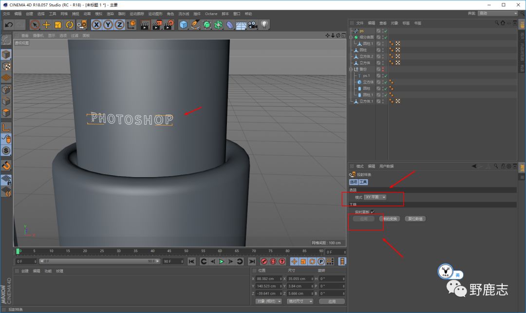 将模式选择为XY平面,应用一下,文字的样条就贴合在膏体上了:
