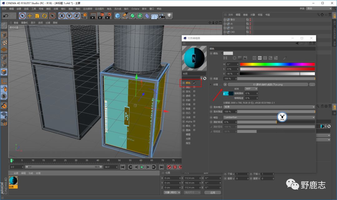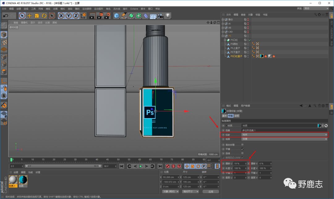 下面就是上材质了,记得之前做易拉罐的时候,有人留言说不会上材质,然后视频速度又太快了。