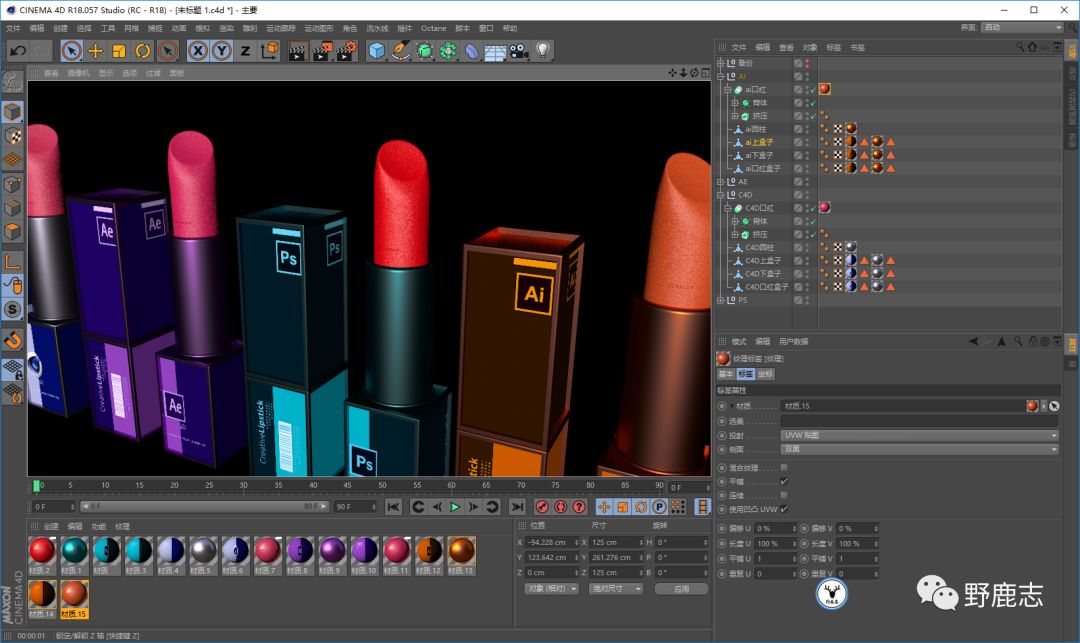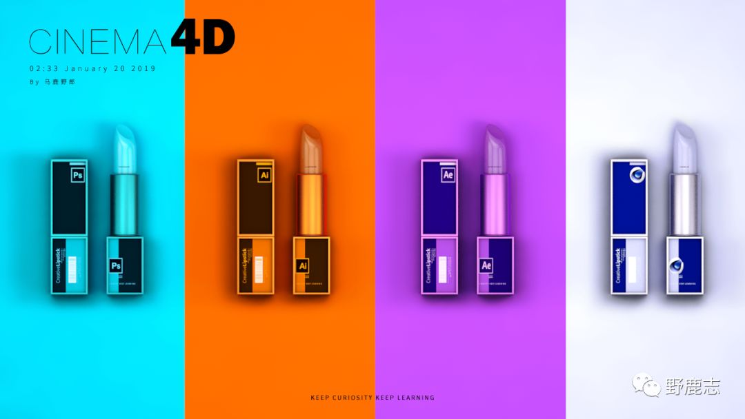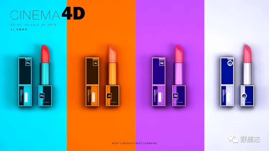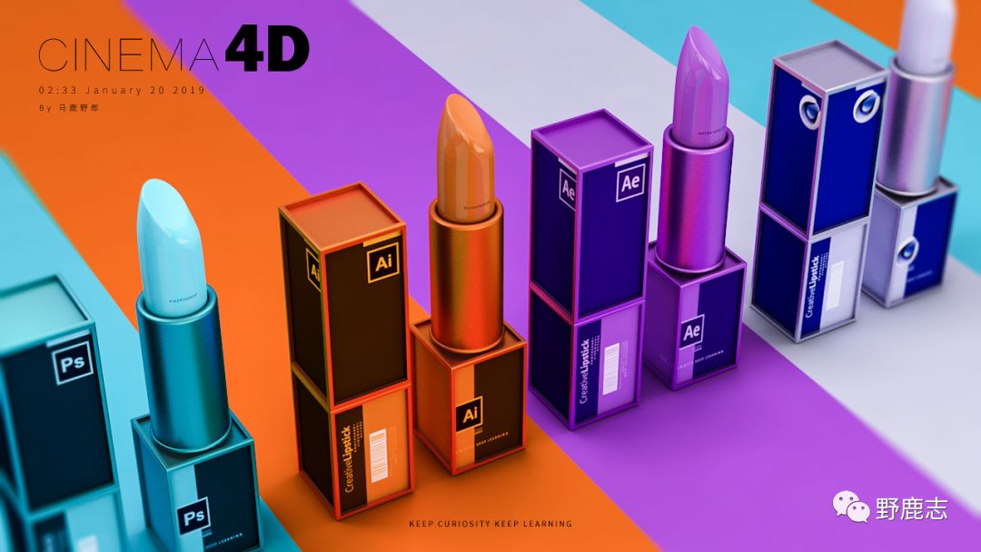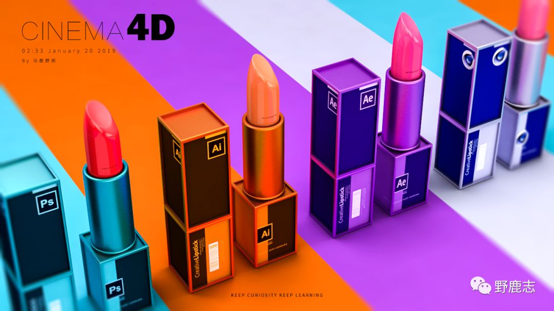 所以就只有自己简单的做了一个彩色条纹当作背景,好了,来吧,来看看这套Adobe口红如何制作吧!
