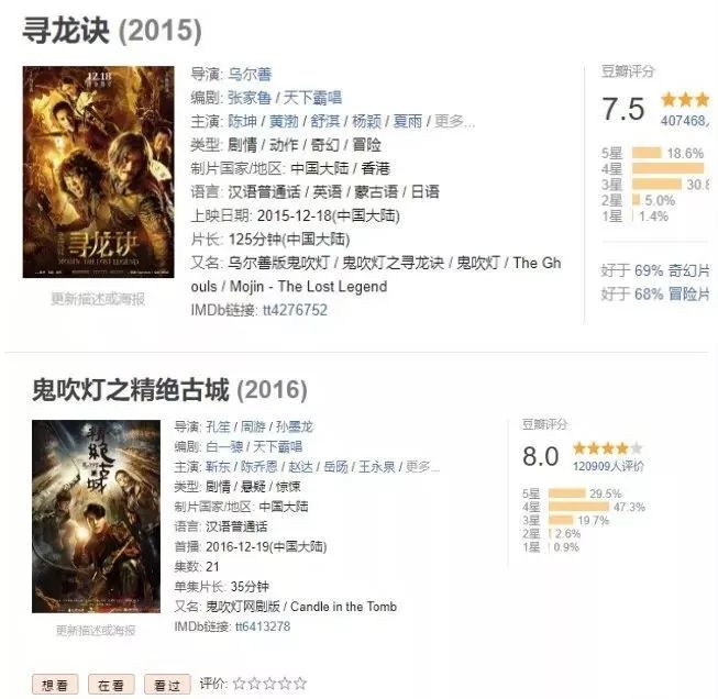 熟悉柚子的都知道,鬼吹灯系列一直是我的最爱,只不过拍了那么多,豆瓣评分高于7分的,屈指可数。