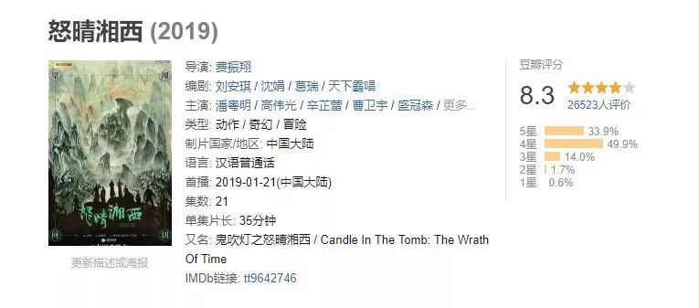 而最近有一部,才播出6集,就高达8.3,不用说,你也猜到了,就是《怒晴湘西》。