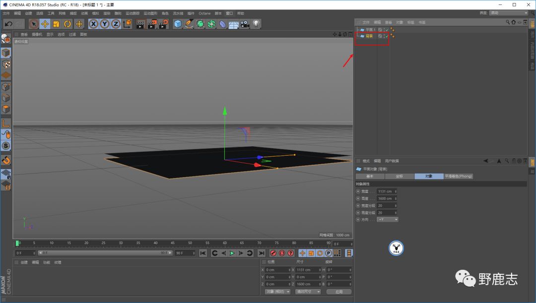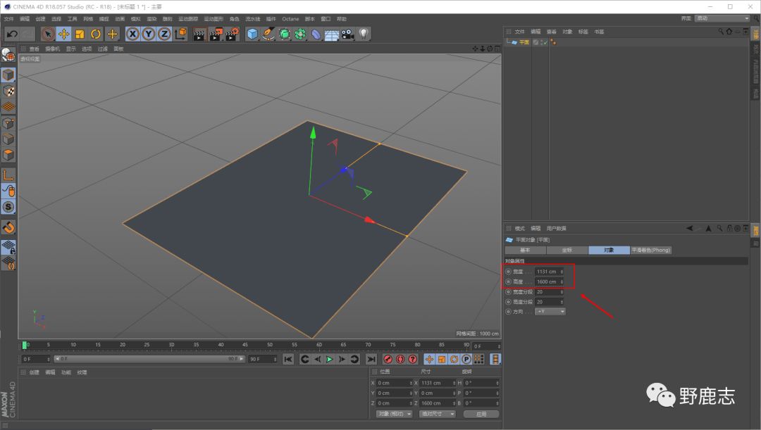 打开C4D,新建一个平面,尺寸大小和排版图片的大小一样就好: