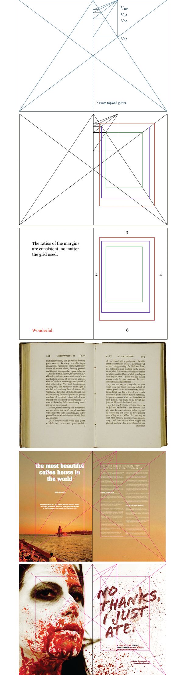 在13世纪,建筑师 Villard De Honnecourt 提出了一个著名的图表,用于制作具有固定比率边距的页面布局 - 被认为是“和谐”设计。正如您所看到的,这仍然是书籍封面等印刷品设计的指导原则。