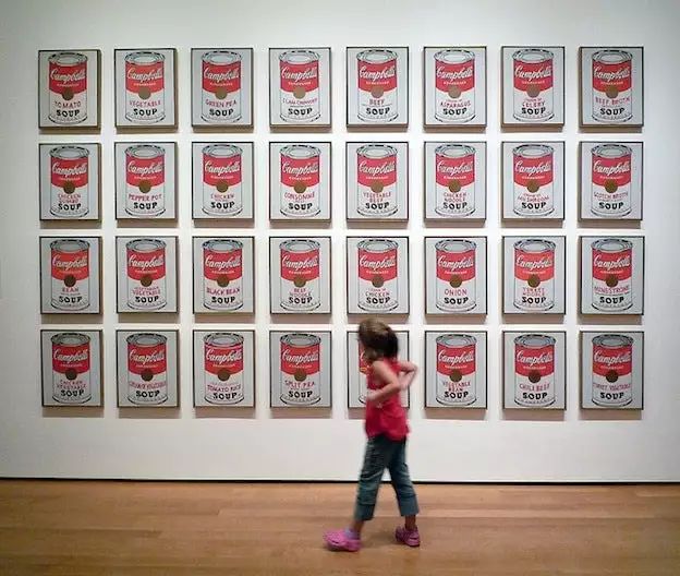 安迪沃霍尔的坎贝尔汤罐排列成网格。照片由profzucker拍摄