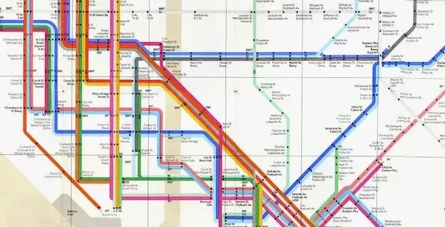 Massimo Vignelli 1972年的纽约地铁地图扭曲了铁路线,使其适合更清洁的网格