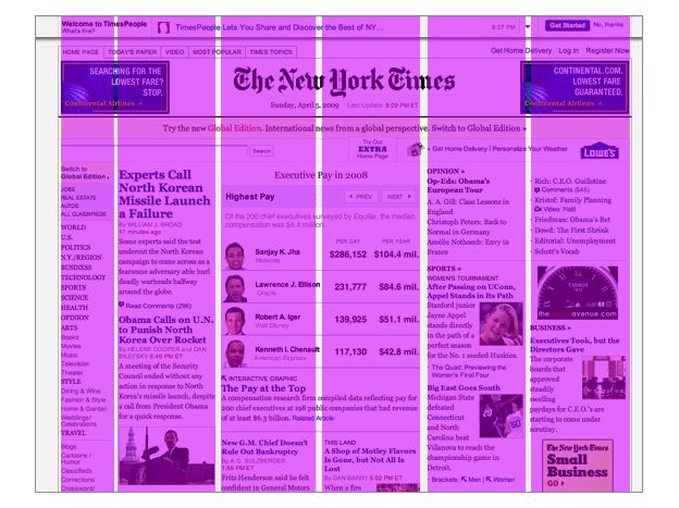 纽约时报网站是另一个着名的网格,由薄轨和5列组成