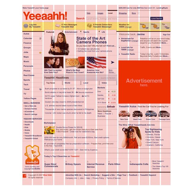 Khoi Vinh创建了一个着名的网站(这里重新标题为“Yeeaahh!”)符合14列网格; 他描述了本文中的过程