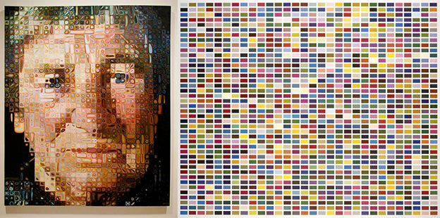 Chuck Close的肖像使用了一个单元网格(左边是rocor的照片),Gerhard Richter使用了一个颜色网格(右边)