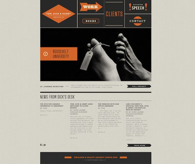 网格干净,为网站提供了良好的结构,用户易于导航并为设计人员节省了大量的麻烦,因为1个网格可以反复使用。因为网站开辟了印刷中没有的新美学尺寸 - 比如使用新的多样性的可行颜色,纹理和字体 - 同样的网格可以用来产生完全不同的外观。