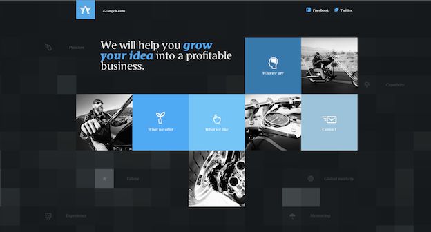 42Angels.com基于5列网格,但也使用精细的马赛克背景来补充外观