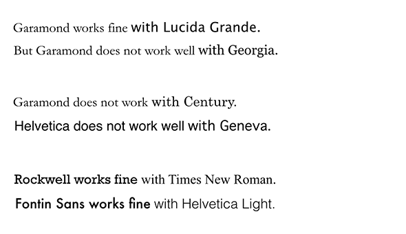 最简单的搭配方式就是用同款字体创造对比,另外一个很保险的方法是选择包含有对比性字体的字体家族,比如ITC Stone Sans Std和ITC Stone Serif Medium以及Freight Sans Pro和Freight Display Pro。很多字体家族是同时包含称衬线体和无衬线体的,它们在设计初始的时候就有相同的骨架,所以排版起来非常协调。
