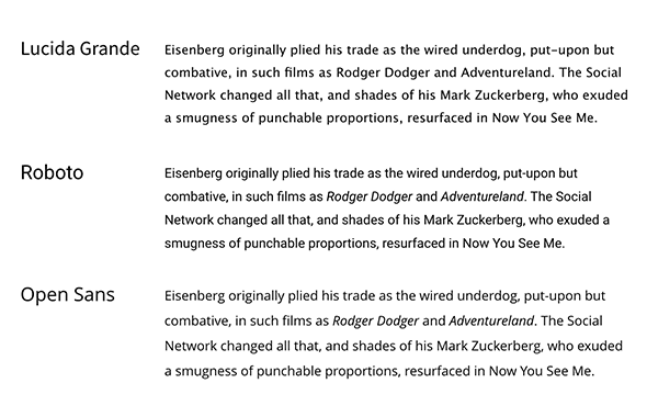 无衬线体:Lucida Grande, Roboto, Open Sans
