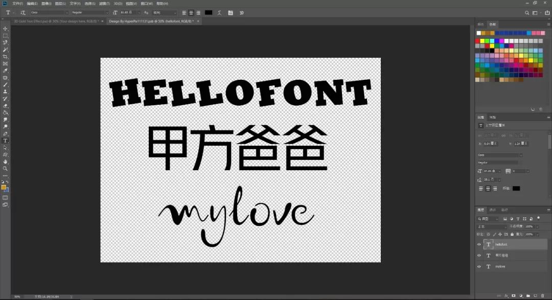 打开字由,从上到下依次变换,Coco、汉仪雅酷黑、汉仪西文字体。