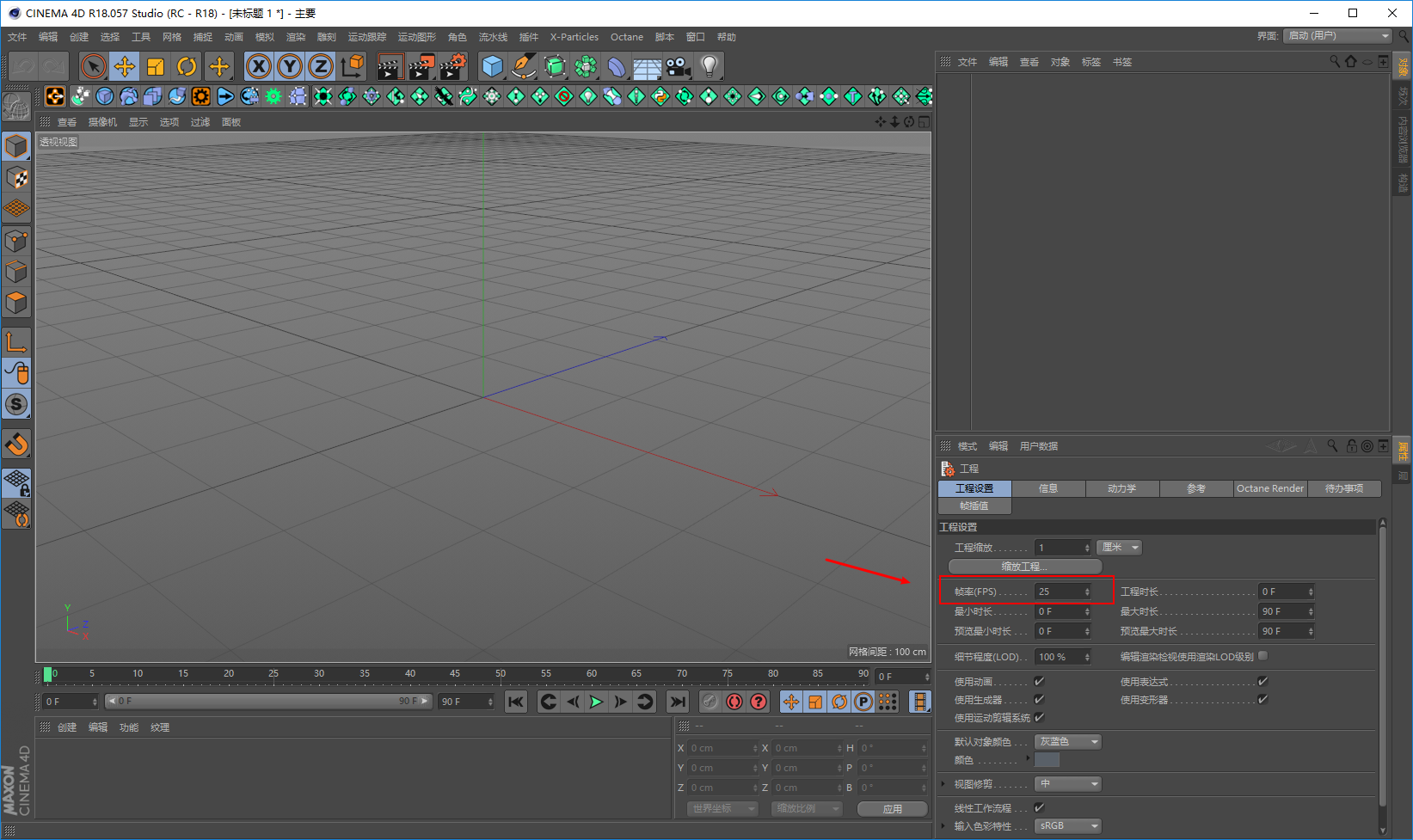 打开C4D,先将帧速率设置为25,就做90帧的动画吧: