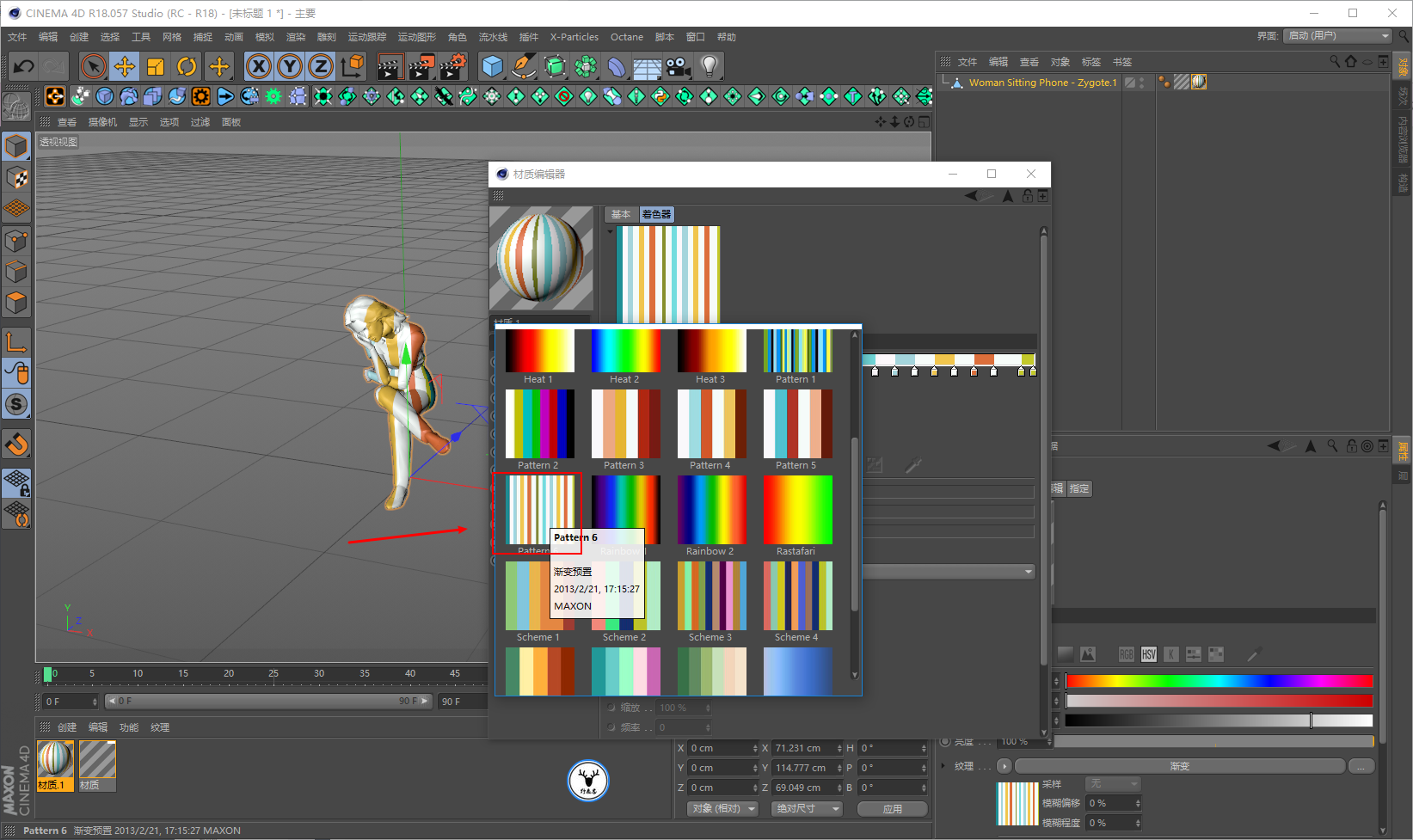 切换到纹理模式,通过移动、缩放、旋转工具对纹理进行调整: