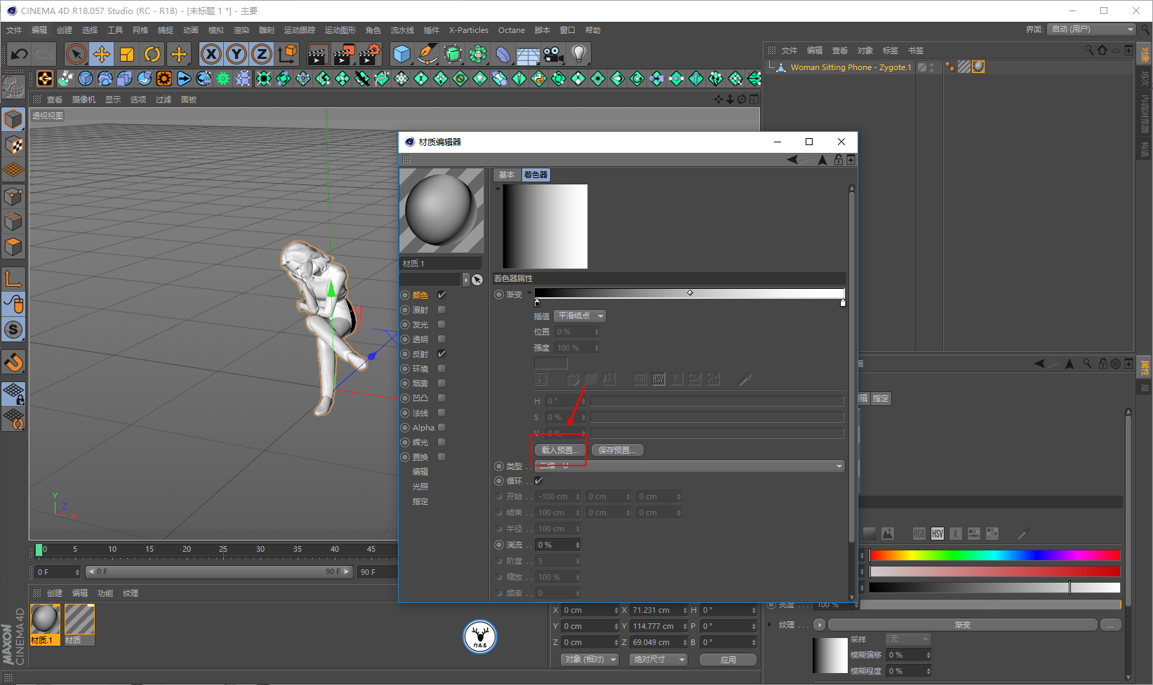 然后在颜色通道加载一个渐变,当然用你自己做的渐变贴图也可以: