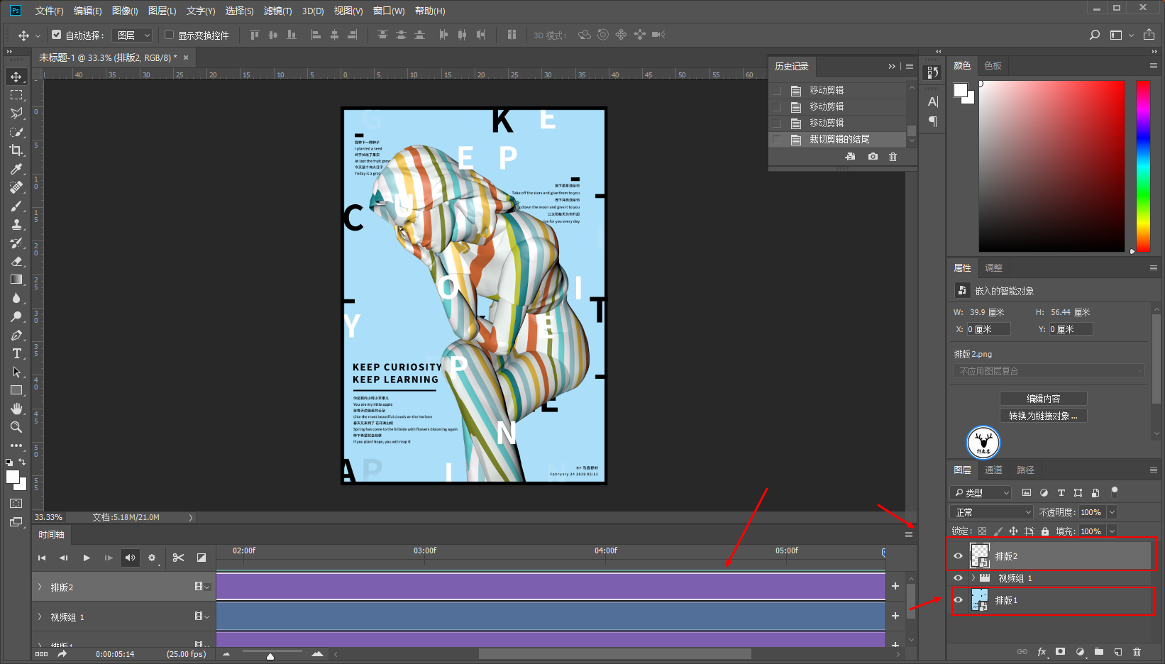 把事先做好的排版拖进来,记得修改一下时间轴上排版图片的播放时长就好: