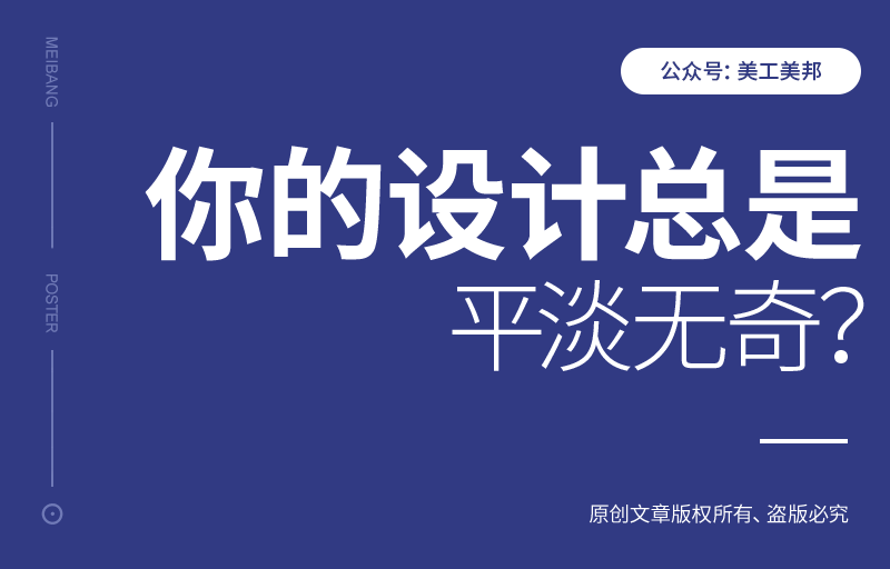 在日常的设计工作中,我们时常会听到需求方这样说:“感觉没有什么亮点”、“这也太简单了吧”、“你这就是底色加文字,感觉谁都可以做”等等一些话语,只会用千篇一律、中规中矩的方式做设计并不是说不可以,也一样可以解决一些设计需求,但这只能算是工作上的及格,无法突破自己现有水平,会导致进步缓慢或者只是原地踏步;如何在完成工作的同时将自己的作品更好的向优秀迈进是我们应该认真考虑的问题,作品平平淡淡应该从哪些方面进行改善?本期就和大家一起分析、总结一下“改变你作品不够出彩现象的常用手法有哪些?”