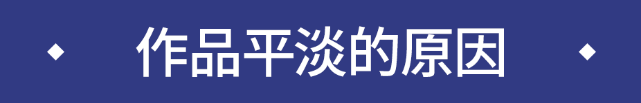 第一:作品整体的层次感不够、缺少变化,常常表现在背景过于单调、文字排版过于简单、缺乏形式感和设计感等等。