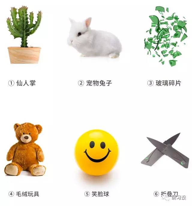 在现实生活中,尖锐的钉子、刀尖、破碎的玻璃,这些都会划伤皮肤,而在大自然中,植物的尖刺与锋利的石头也同样是危险的。这些经验与记忆每时每刻都在影响我们的感受,让我们对事物产生同形联想,当人们看到这类物体,视觉心理上会产生紧张感,而外表光滑圆润的物体多数是安全无害和易于接近的。所以说,上图中能够传达亲近感与可爱印象的图片应该是编号②④⑤。