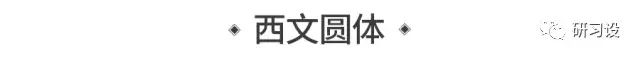 在西文字体中的圆体,也是根据无衬线体演化而来,气质的变化与中文圆体类似。因为西文的字母笔画相对于中文来说要少,结构上也更加简单,所以在粗细的变化的幅度上会较中文圆体的粗细幅度更强烈一些。