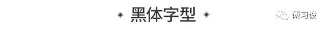 中文字库中的黑体,相对宋体来说笔画特征会更加简洁,几何的造型结构给人现代的印象。而在黑体分类中,并不是所有的黑体都绝对是水平垂直的结构,早期的黑体,中宫较小,笔画结构存有手写特征,喇叭口更是在照排时期为保证笔画边缘的锐利程度而特别设计的。这种黑体更适合表现与人文相关的情景,相对于老式黑体,现代黑体中宫更大,在小字号下更加容易识别,是效仿西方文字的理论而设计出来的,更适合表现现代感的情景。