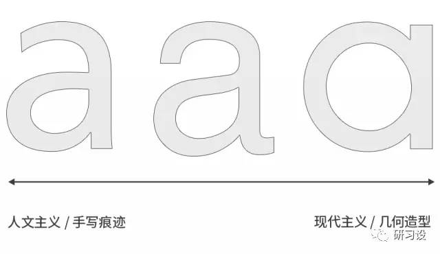 无衬线体与中文的黑体类似,同样具有人文主义结构与现代几何造型等不同的字形。人文主义字体结构中保留了手写痕迹;而现在主义的字体更加几何化,适合表现现代感相关的情景;处于两种风格之间的字形则相对中性,没有明显气质,因此适用范围较广泛。
