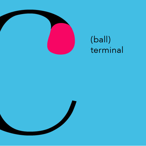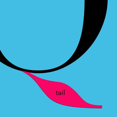 字符笔画收尾的部分被称为尾部。尾部可能是圆形的,模仿钢笔书写时因停顿而留下的墨迹。