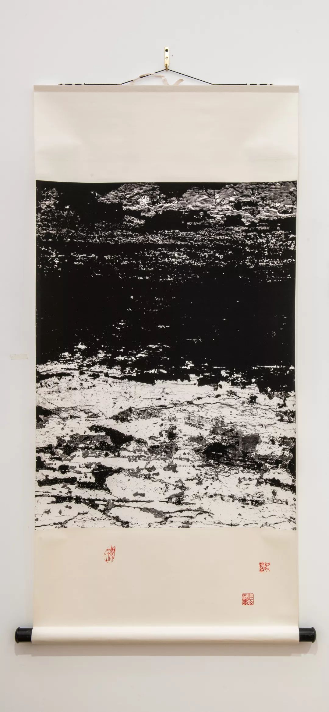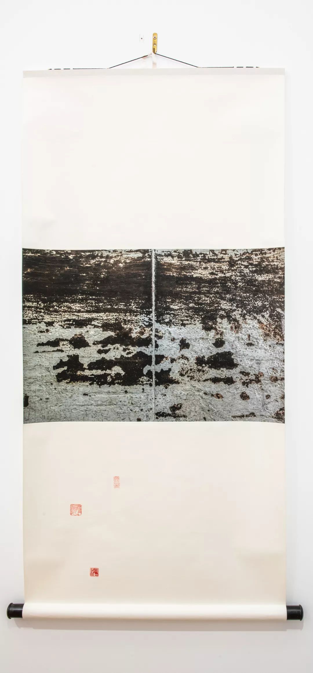 还有一组全新创作为《City Landscape》系列,这是向我的生长地香港致敬,也是我工作日常所见的城市山水景色。我在香港有个7000平呎的艺术文化空间,建于六十年代的工业大厦内,一年常常会举办多场设计与艺术活动,那些工厦的电梯内极度斑驳,每天我看着都觉得其纹理有趣,于是我拍下这些局部,甚至调成黑白,制作成卷轴落上印,成为我的现代城市山水画。