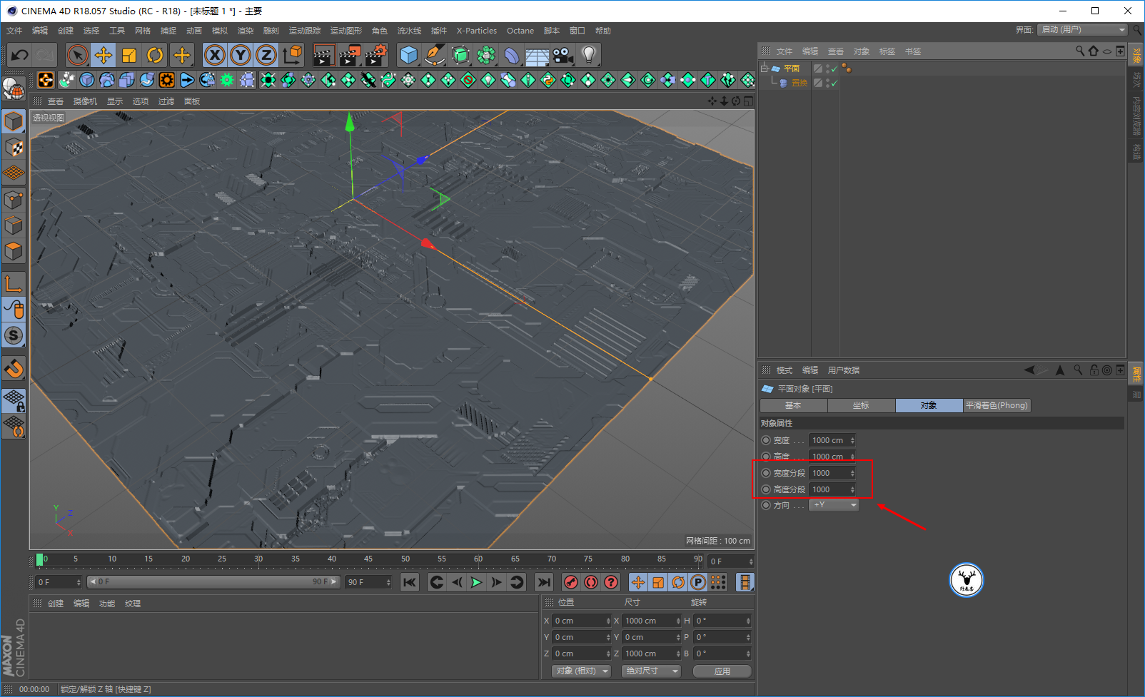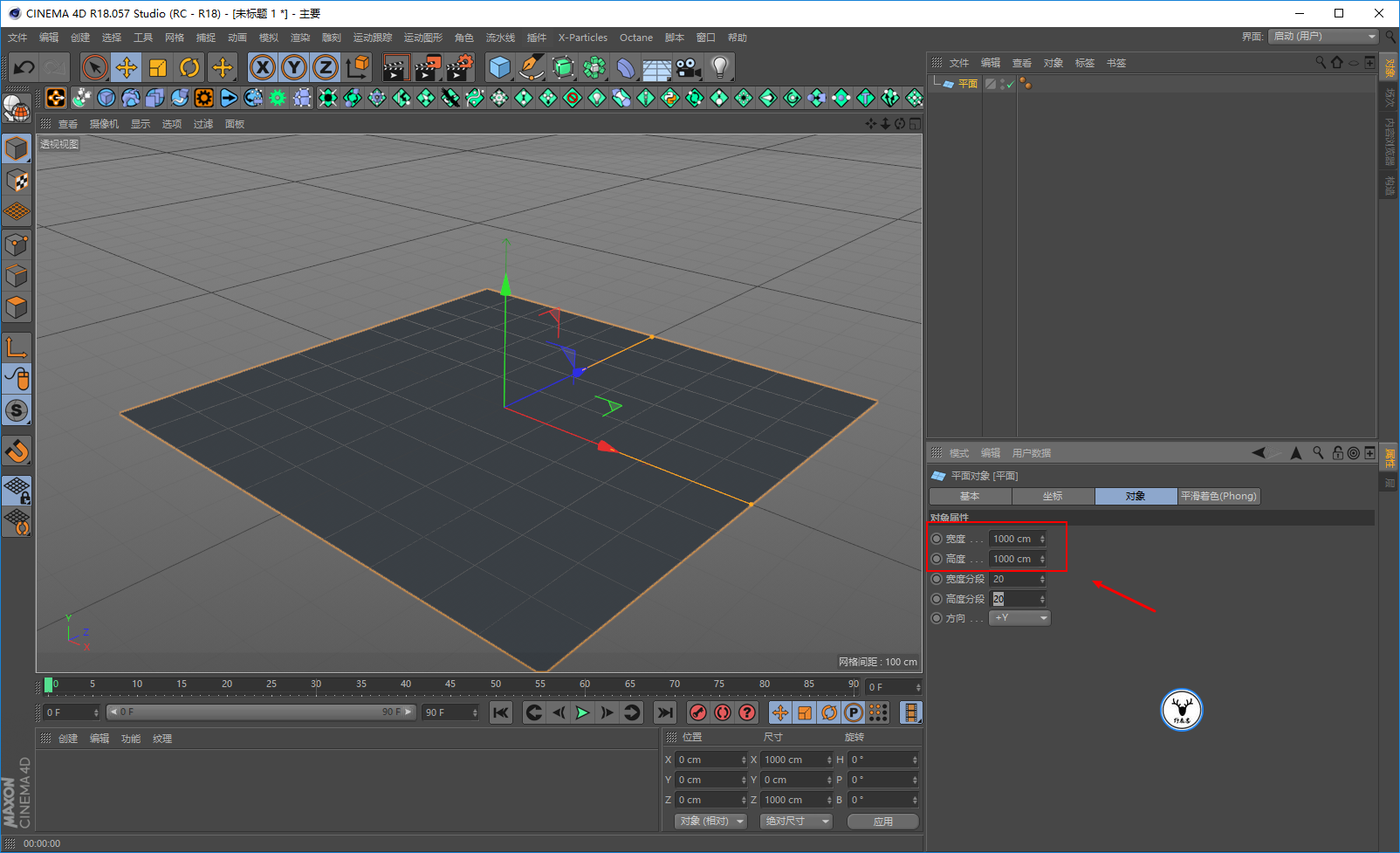 然后打开C4D,新建一个平面,尺寸可以稍微大一点: